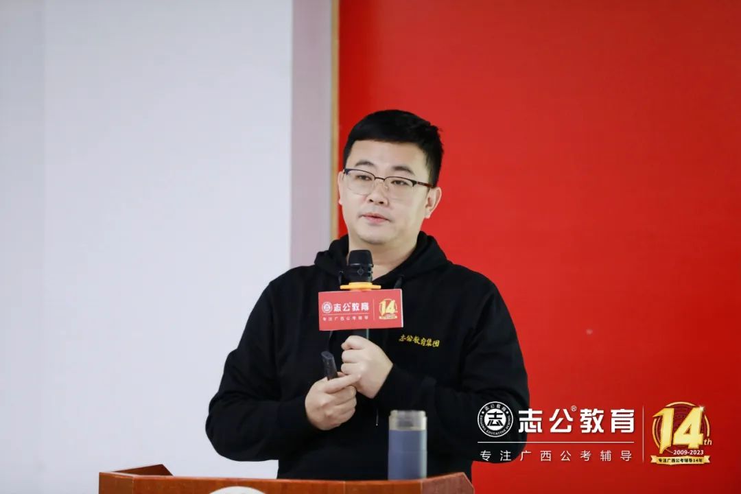 16日上午9點(diǎn)許,董事長(zhǎng)李勇發(fā)表致辭,他認(rèn)為:“聚焦是一種力量”,對(duì)于志公教育而言,聚焦就是專注廣西公考輔導(dǎo)。