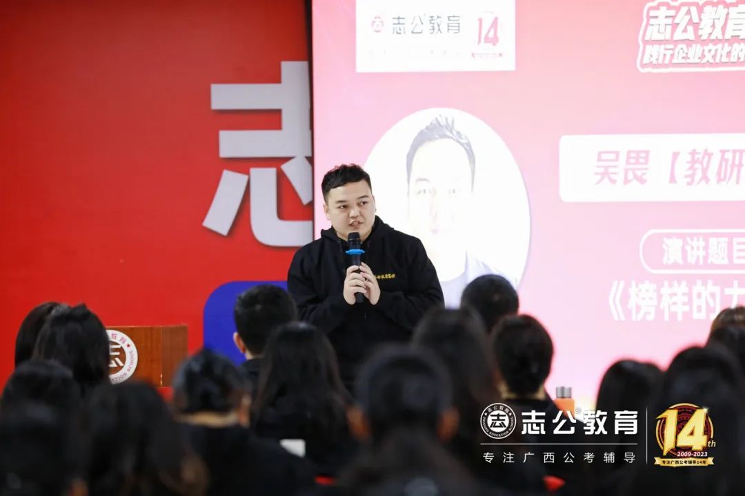 一直以來,志公教育都秉承著“12條企業(yè)文化核心價(jià)值觀”,包括客戶原則——以學(xué)員為中心”、“管理原則——人人都是經(jīng)營(yíng)者”等12項(xiàng)原則,扎根廣西本土公考,全力服務(wù)每一位志公學(xué)員。在董事長(zhǎng)李勇的正確領(lǐng)導(dǎo)下,在廣大學(xué)員的支持下,在全體員工的共同努力下,志公教育從無到有,從小到大,不斷夯實(shí)發(fā)展基礎(chǔ),贏得了客戶的信賴和品牌形象。全體志公人將堅(jiān)定目標(biāo)齊奮斗、凝心聚力再出發(fā),為志公高質(zhì)量發(fā)展再立新功。