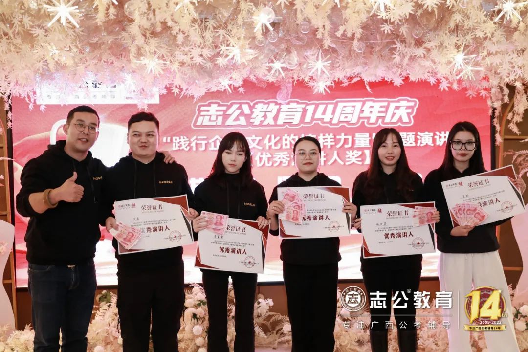 16日晚上,全體員工齊聚一堂,開始了頒獎(jiǎng)儀式,感謝各位志公人為志公教育的付出。頒獎(jiǎng)的項(xiàng)目有志公教育14周年慶舉辦的主題演講比賽和短視頻大賽。激動(dòng)的心,顫抖的手,努力有了回報(bào),獲獎(jiǎng)選手拿著獎(jiǎng)金,喜悅之情溢于言表。大家也都用掌聲來表達(dá)對(duì)他們的祝福。