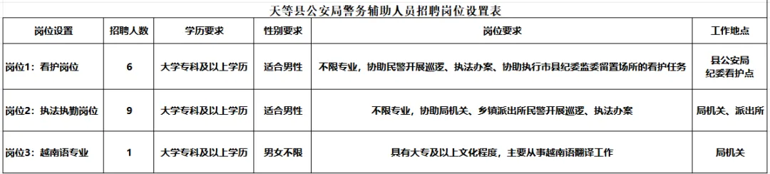 附件1:天等縣公安局警務輔助人員招聘崗位設(shè)置表
