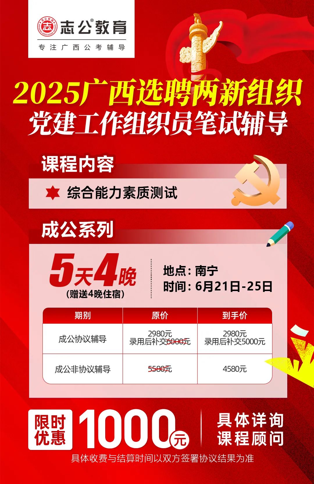 報名入口開通!2025年廣西壯族自治區(qū)選聘兩新組織黨建工作組織員今起報名,附免費備考資料!