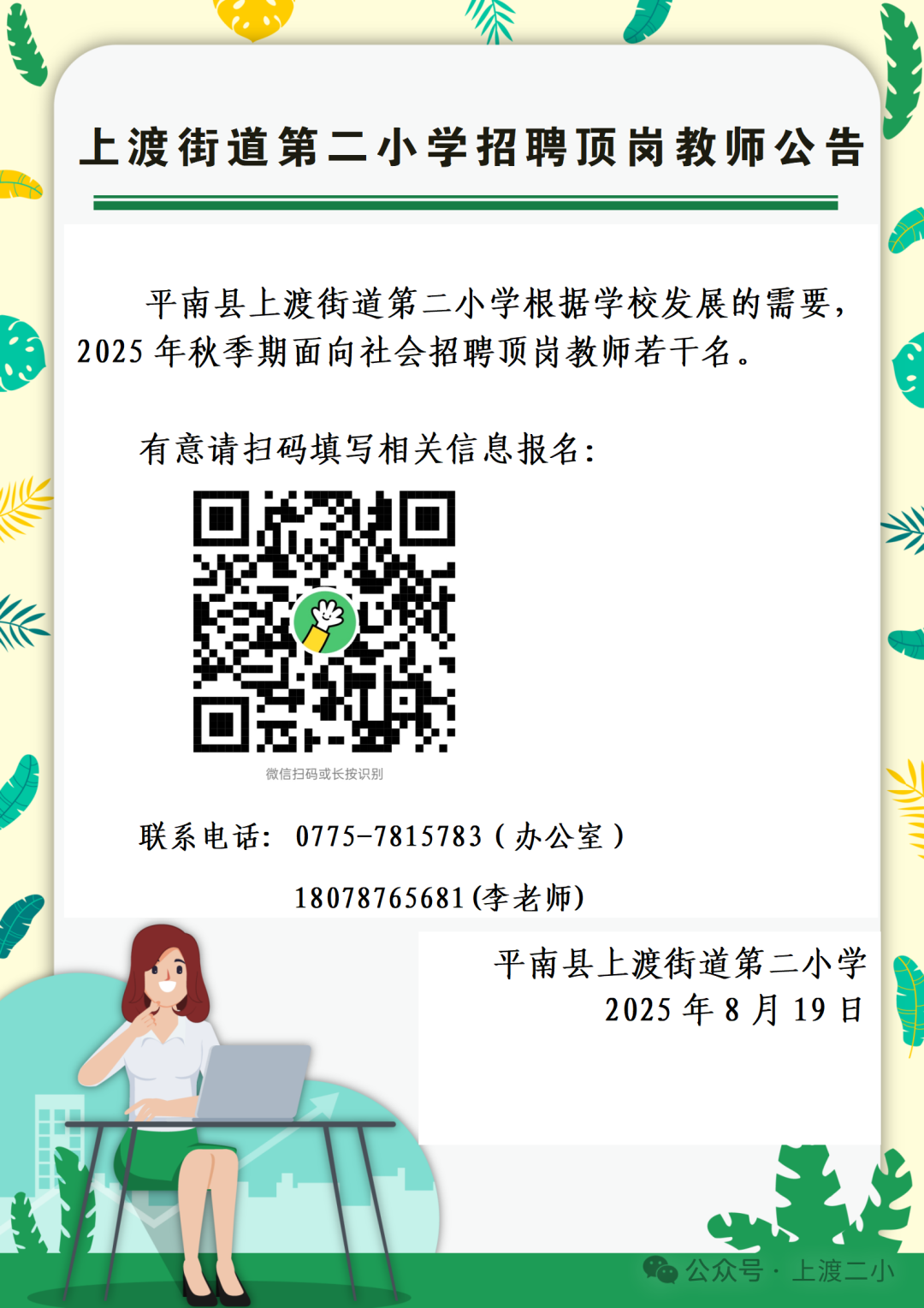 原文標題:上渡街道第二小學(xué)2025年秋季期頂崗教師招聘公告