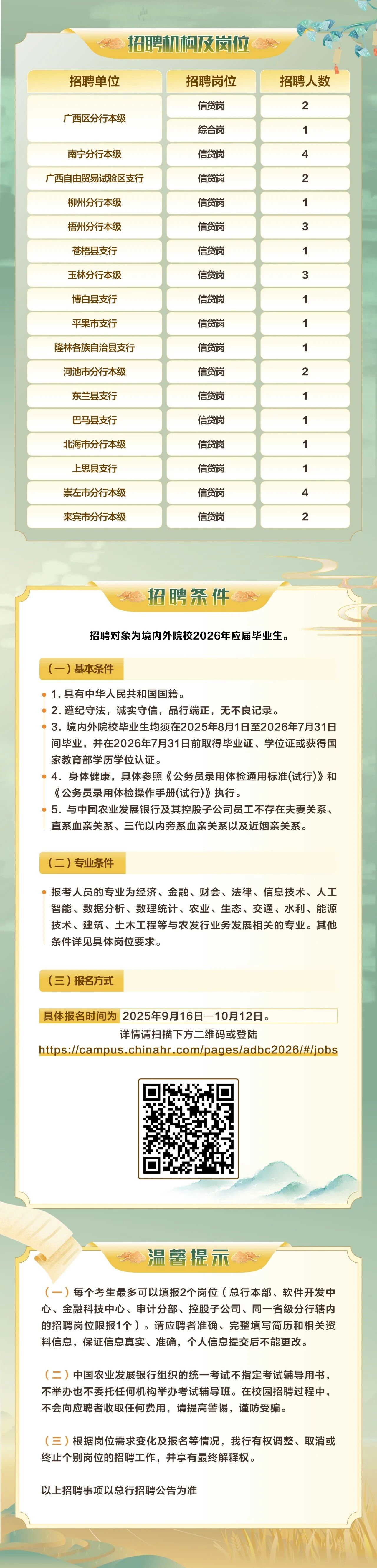 中國(guó)農(nóng)業(yè)發(fā)展銀行廣西區(qū)分行2026年校園招聘正式啟動(dòng)